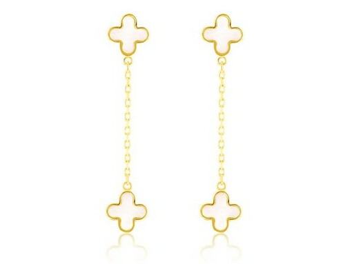 • 9K Yellow Gold Mother of Pearl Petal Drop Earrings
