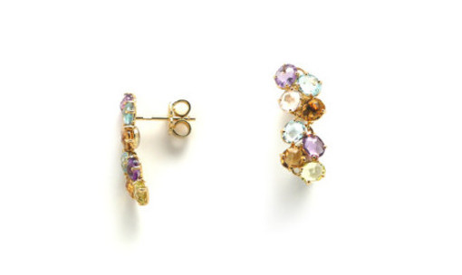 18kt Yellow gold Ipanema earrings with various different cut natural stones.
