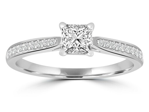 9K Princess Cut Natural Mined Diamond Ring