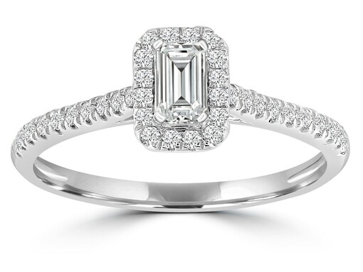 White Gold Emerald Cut and Brilliant Round Natural Diamond Ring