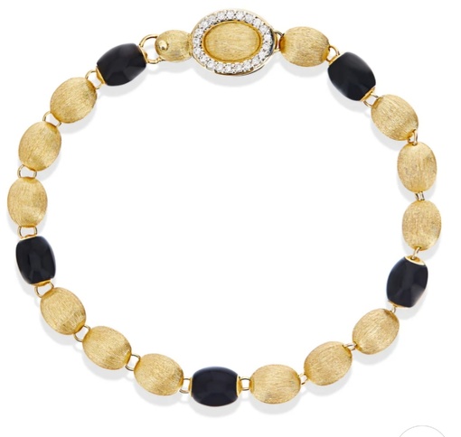 "IVY" GOLD WITH BLACK ONYX BOULES AND DIAMONDS Bracelet .