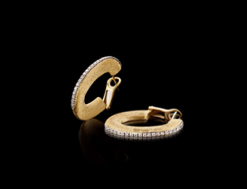 18KT Yellow Gold Brushed Hoops with Diamonds